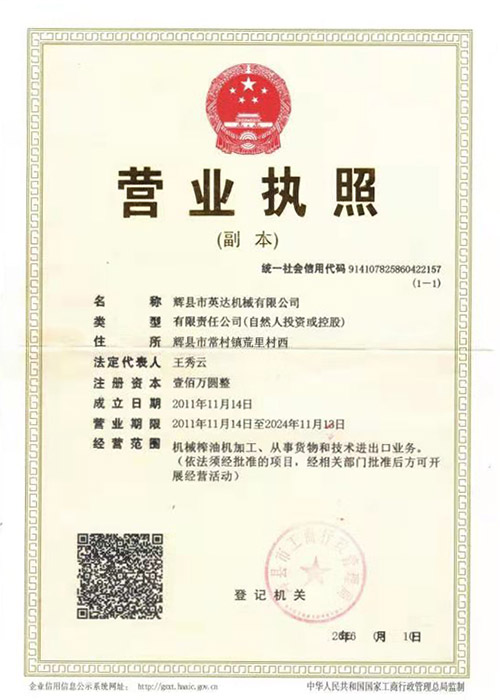 輝縣市英達(dá)機(jī)械有限公司成立于1983年,是在原輝縣市榨油機(jī)配件廠的基礎(chǔ)上改制而成?,F(xiàn)建筑面積面積7000平方米,員工120人。公司距省會(huì)鄭州僅90公里,毗鄰京珠高速、107國道等交通要線,交通十分便利。 公司從榨油機(jī)配件起家,經(jīng)過30余年的艱苦創(chuàng)業(yè),業(yè)務(wù)范圍逐漸從各類大中小型糧油單機(jī)擴(kuò)展至植物油、動(dòng)物油、糧食加工全套生產(chǎn)線,客戶群體涵蓋小型家庭用戶和大型糧油公司投資項(xiàng)目。英達(dá)機(jī)械已升級(jí)蛻變成為集研發(fā)、生產(chǎn)、銷售為一體的糧油機(jī)械生產(chǎn)廠家。 英達(dá)機(jī)械根據(jù)客戶需求,為客戶提供更實(shí)用、靈活的配置方案,產(chǎn)品在國內(nèi)占據(jù)穩(wěn)定市場(chǎng),更遠(yuǎn)銷東南亞、中亞、非洲等世界各國,深受消費(fèi)者喜愛和信賴。 企業(yè)精神:誠實(shí)守信、創(chuàng)新進(jìn)??;科學(xué)發(fā)展,造福社會(huì)。 企業(yè)標(biāo)準(zhǔn):制度規(guī)范化,管理化。 企業(yè)原則:實(shí)事求是,盡心盡力,共同發(fā)展。
